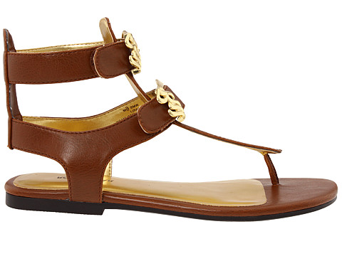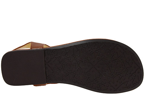 Due inarcamenti di marchio del faux sulle cinghie della chiusura del gancio-e-ciclo genera un sandalo che è facile da ottenere in funzione e a riposo.